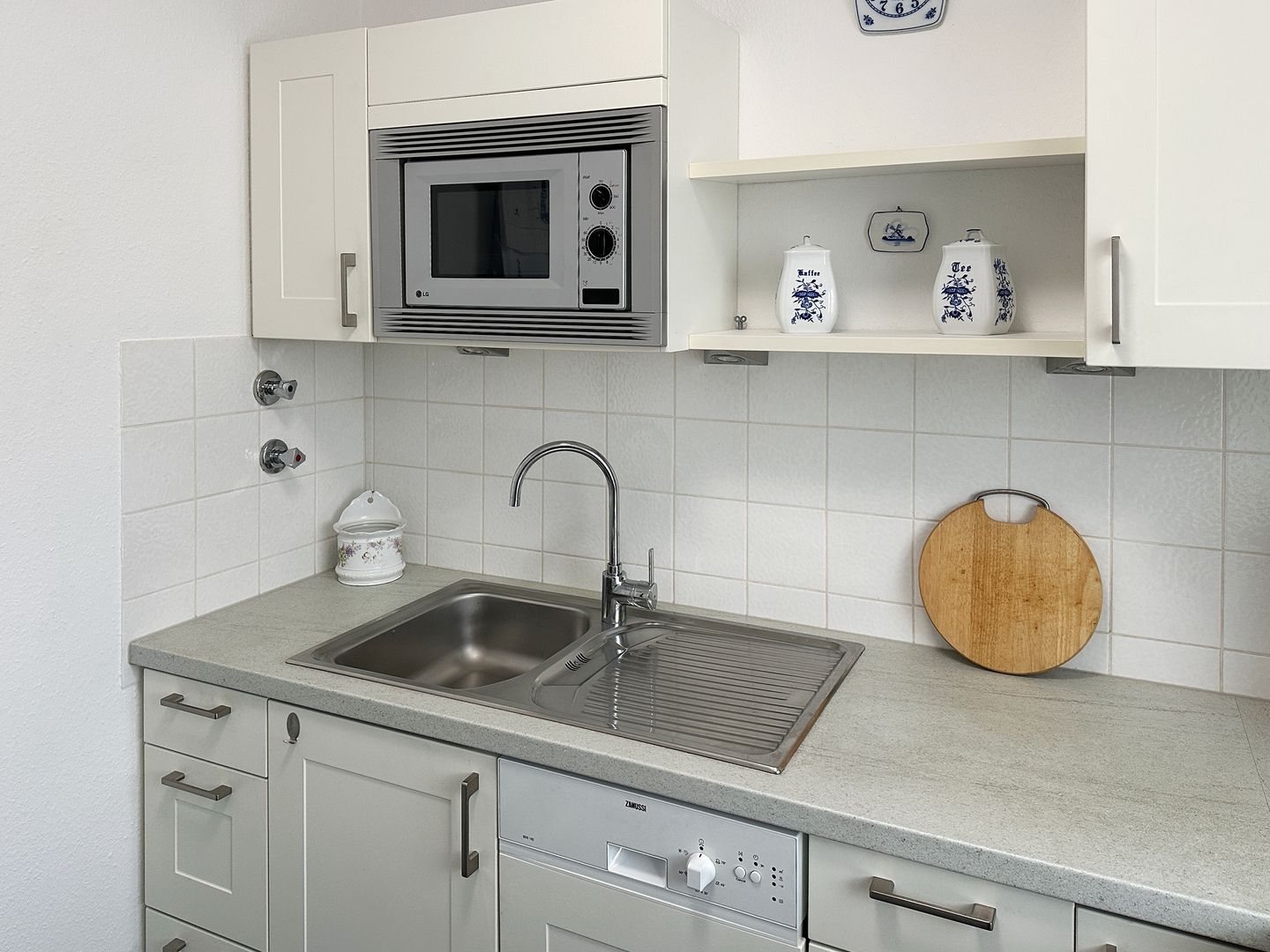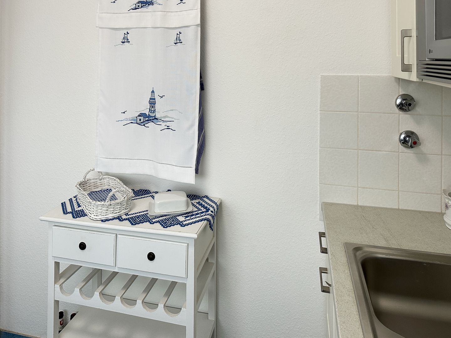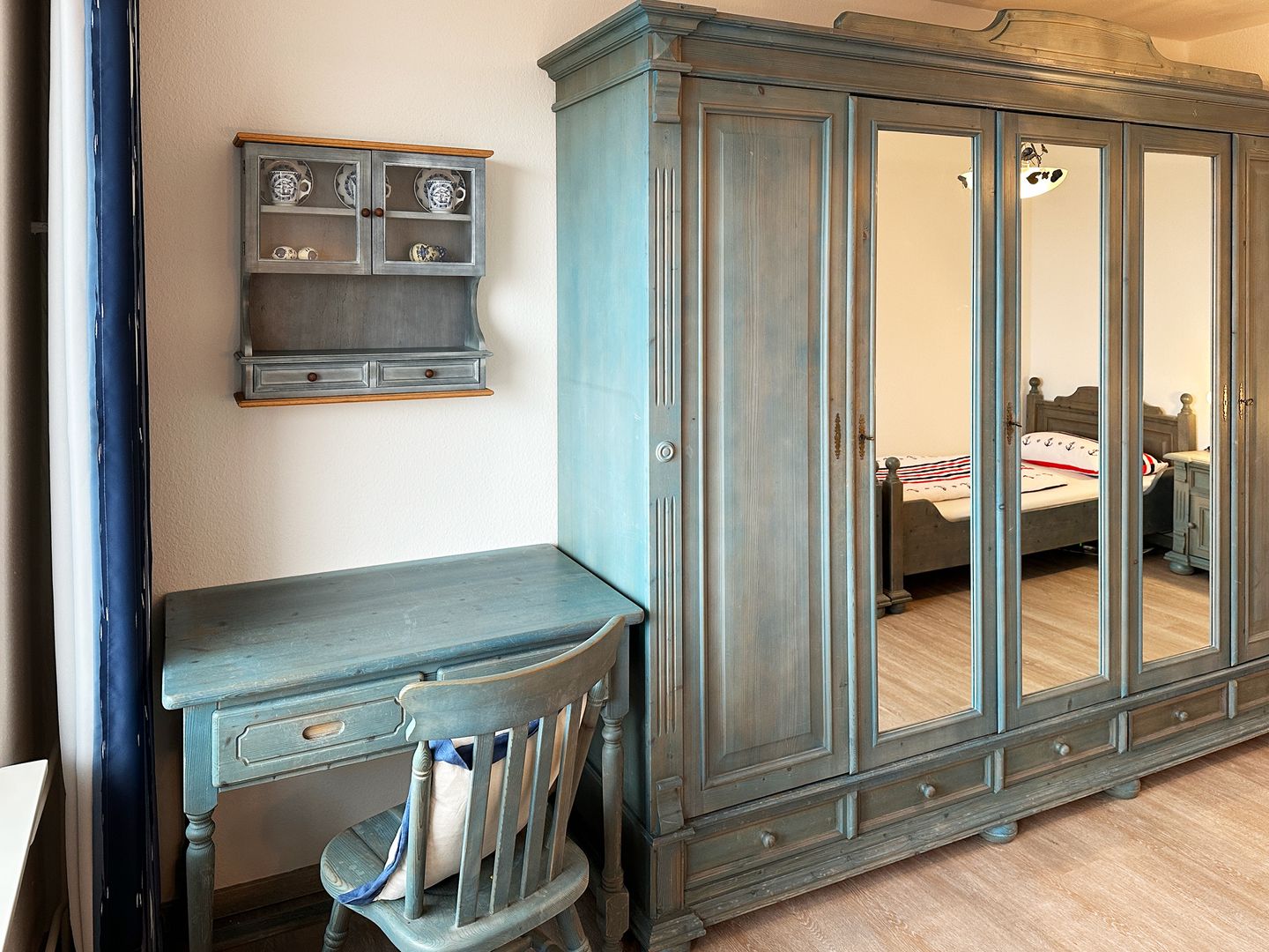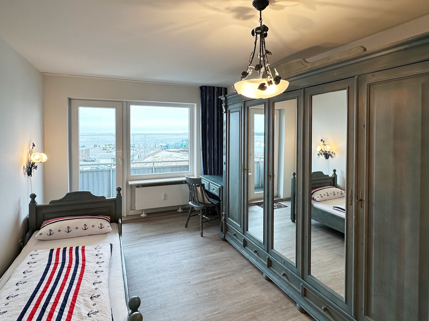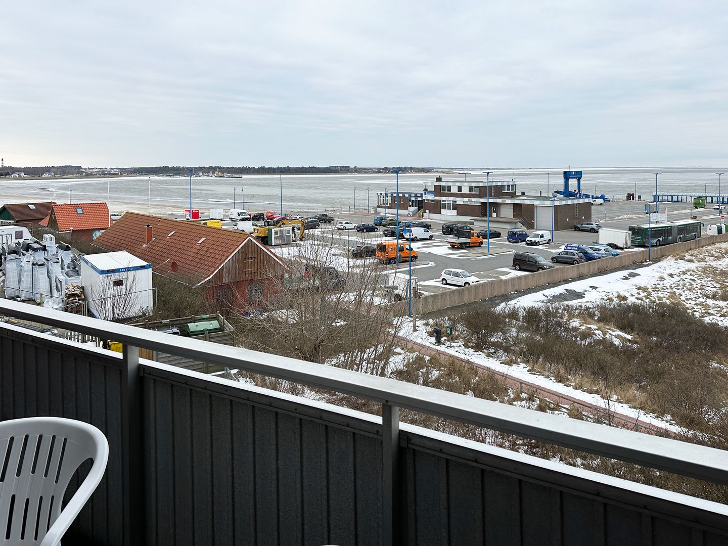Die Wohnung verfügt über 1 Wohnraum mit Sat-TV, 1 Küche, 1 Schlafzimmer, 1 Badezimmer mit Dusche und WC; 2 überdachte Nord-Balkons mit Gartenmöbeln (April bis Oktober) und Meerblick auf den Fähranleger und Föhr sowie den Seezeichenhafen und die gesamte Insel Amrum bis Sylt bei klarer Sicht.